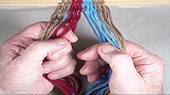 Finish the second pass of [Z] twist interlinked fingerweaving. |