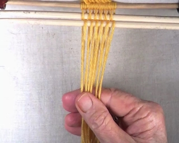 | When planning a diagonally interlaced project, the configuration of the strands on the headstick establishes the foundation for the weaving. Several decisions must be made before the headstick can be configured. First, the number of strands. Next, the direction the weave will be worked. Finally the configuration of the shed. |